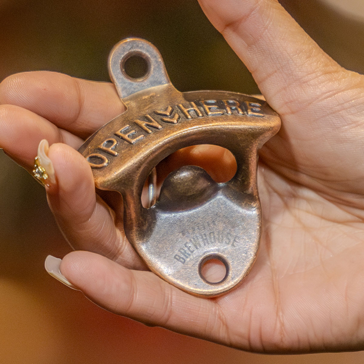 Crack open your favorite beer the right way with this Glacier BrewHouse wall-mounted bottle opener. Cast in durable metal with a classic, slightly weathered finish, this opener brings a timeless brewery feel to any space. Designed for easy, one-handed use, it mounts securely to a wall, post, or bar surface — perfect for kitchens, garages, cabins, home bars, or patios. Functional, rugged, and unmistakably BrewHouse, it’s the kind of piece you’ll use for years. A must-have for beer lovers and a great gift for anyone who appreciates quality, practical brewery gear.